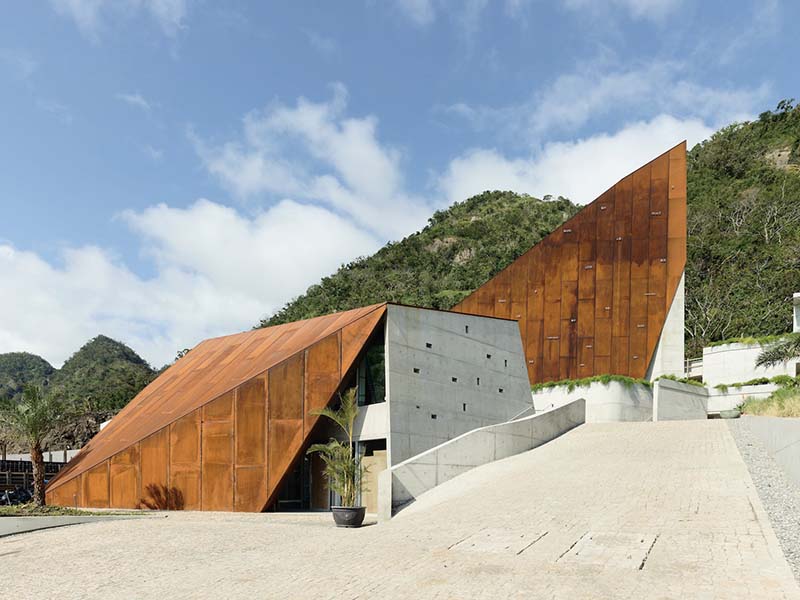 江賢二藝術園區恭源接待中心(前)與承翰館外觀一景(攝影:Studio Millspace;圖版提供:江賢二藝術文化基金會)