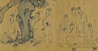 既然有後人將傳說中的西園雅集情況寫成文章,那麼就不免有畫家按照文字敘述來還原場景的描繪。為了使觀眾掌握北宋雅集的實情,策展團隊特別挑選〈宋無款人物〉與宋徽宗的〈文會圖〉兩件國寶,藉由畫作具象化的宋代理想雅集場景及文人生活器用,提供觀眾想像、模擬西園雅集可能的情境。
