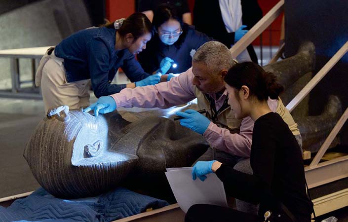 「古埃及文明大展─埃及博物館珍藏」在香港故宮文化博物館隆重登場,共呈現由埃及最高文物委員會所有的兩百五十件來自七間埃及重要博物館和薩卡拉(Saqqara)考古遺址的古埃及珍貴文物以及新近出土的考古發現。10月底的開箱活動率先亮相三件重點展品,分別展示於博物館地下大堂和二樓中庭。