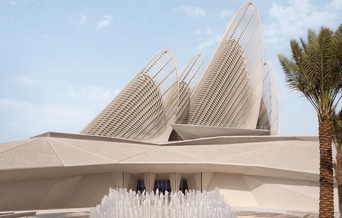 阿布達比扎耶德國家博物館(Zayed National Museum)的創建源自紀念開國元勳和第一任總統扎耶德(Zayed bin Sultan AlNahyan),旨在保存阿聯酋成立以來的歷史檔案,並成為研究與教育平台。該項目由英國知名的諾曼.福斯特(Norman Foster)建築事務所操刀設計,配合薩迪亞特島文化區整體規畫,以營造「連接傳統與未來」的文化地標。