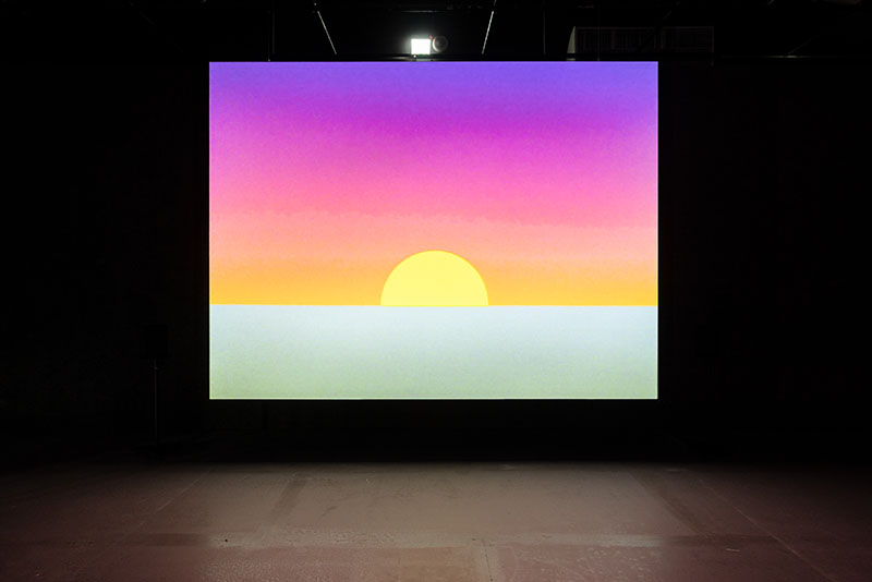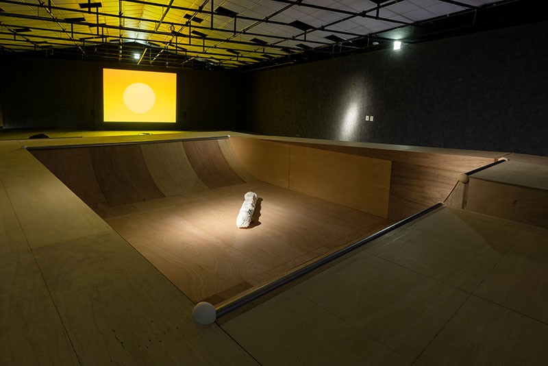 安德列.巴宏(Andrés Baron)的〈印製夕陽〉錄像中呈現一對男女如情侶一般地依偎著,神情專注望向遠方的夕陽,珍惜著最後一縷暖陽的時光,但隨著鏡頭緩慢重複推移,觀者最後卻會發現他們所凝望的其實是在看板上的假夕陽,藝術家抽取好萊塢電影的浪漫愛情公式和典型場景,引人入戲之後,卻又予以揭露;在同一空間與之對應的是許芝瑜〈發掘現場:馬鈴薯形石器(蝠紋樣浮雕)、啞鈴形骨骼等〉是一座似考古發掘現場又是滑板練習場的大型裝置,並展呈現場出土的虛假考古文物。她讓觀者想像滑板運動者和考古學家進入這個凹陷空間時不同的身體感和其中的經驗交集。傑克.伯頓(Jack Burton)限地製作的〈長途公路旅行〉截取出公路電影影像中令人熟悉的諸多元素裝置於空間,搭建出這些人們一生中總是會走過或遇見的地方,也關於城市中的孤獨體驗。