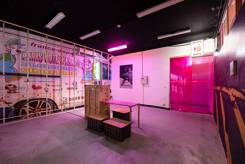 穿梭在C-LAB園區找尋作品時,策展布局上作品與空間的關係賦予了更多可以延伸的詮釋。游崴表示,「崩塌記憶之宮」做為C-LAB年度大展,展覽佔據園區五個地點:聯合餐廳、圖書館、通信分隊、美援大樓等四棟建築物的展演空間以及戰情大樓前廣場,而不同展場各自對應著不同的主題。「聯合餐廳設置的作品觀照虛構的歷史感,或是以一種後設的方式去重新探討何謂歷史感;通信分隊和美援大樓是關於政治社會事件以及大敘事;圖書館展場則關注於個人的經驗、日常生活、大眾文化以及業餘者的創意致敬等。」