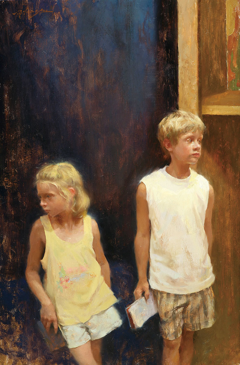 對於旅美藝術家曾新耀及其作品的印象,他游移在印象寫實與抽象之間的城市風景系列繪畫應更為台灣的觀眾所認識,而他其實亦相當善於肖像畫與人物畫創作。作於2011年的〈從沒告訴過妳〉,描繪一對站在牆邊的男孩和女孩,他們微微側頭,視線看向相反的方向,兩人看似沒有直接的互動,但從他們手上都拿著冊子的共同點以及臉上的微表情和肢體動作,流露出的是兩個孩子間對彼此的在意。這是曾新耀將人們在成長過程面臨的離別卻不懂得如何表達、來不及訴說情感的意境透過畫筆呈顯,連結觀者自身經驗,這件作品獲得美國肖像協會(Portrait Society of America)2012年國際肖像比賽傑出優異獎。