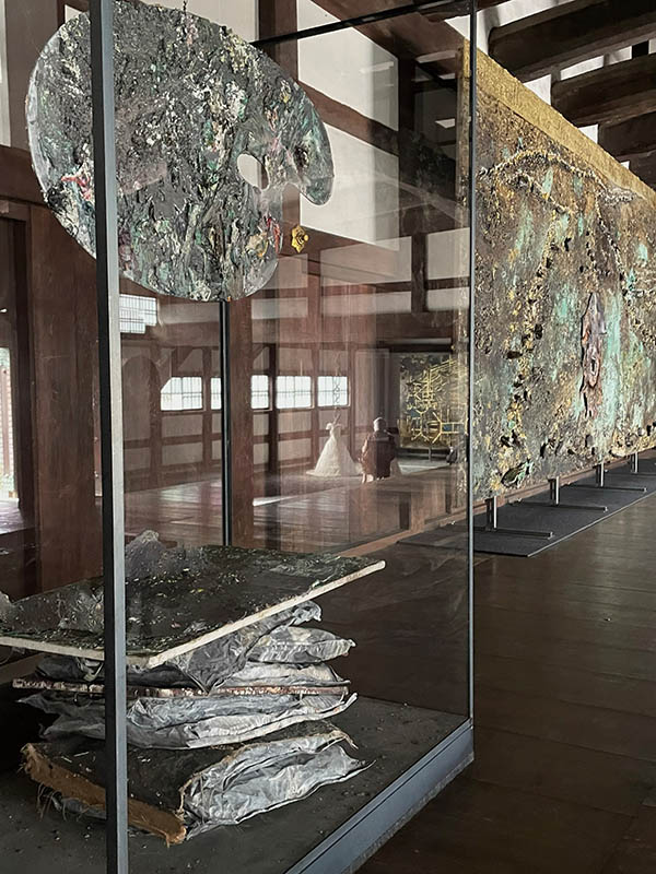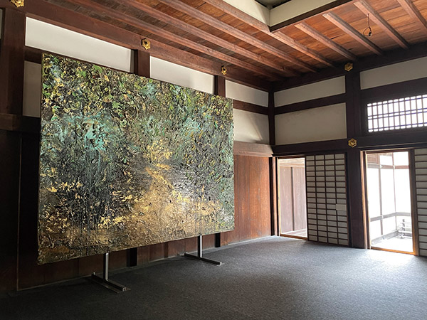 京都櫻花初放的季節,世界遺產二条城難得舉辦了當代藝術展。亞洲最大規模的安瑟姆.基弗(Anselm Kiefer)個展「安瑟姆.基弗-太陽(Anselm Kiefer SOLARIS,展期3月31日至6月22日),在日本古代皇居歲月流轉的空間中,展出33件繪畫與雕塑作品,表現出藝術家對東西史哲、科學、藝術的精博思想,以及二戰侵略國後代的省思。年屆80歲的基弗於終戰之年出生於德國,以深刻反省德國黑暗歷史為創作原點,哀戚壯闊的作品,是藝術家對世紀悲劇與創傷的凝視與回應。在「日出之國」日本舉辦的個展以「太陽」為題,綜觀人類文化對太陽的崇拜與詮釋,並對照熱衷使用金箔的日本藝術,探討基弗作品中金箔的運用,也透過文明科學與人類生滅的關係,以廢墟風景詮釋戰爭記憶與傷痕,為二戰結束80年後世界各地仍爭戰不休的當今,留下一記啟示。
