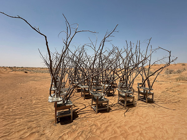 第16屆沙迦雙年展(Sharjah Biennial)已於6月15日結束,我趕在展覽結束前去了一趟。時節雖在5月,但是中東的沙漠型氣候已然難耐。回望這趟行程,我幾乎是在一種極端的孤獨與高溫中完成觀展:陌生的語言、炎熱的空氣、溫度瞬間驟降20度的展覽空間,所有感官都被撕裂、拖曳、再重組。每次進入展館前,一個人站在曬得發燙的街道上,沒有其他觀眾。頂著40度的高溫,使等候亦成為一種內在的修行。身處異地,沒有網路就無法導航,沒有語言就無法問路,一切的現代科技瞬間變得脆弱無用。我數度被Uber司機拋棄在路邊,無人惡意相對,但我早已被環境打敗。