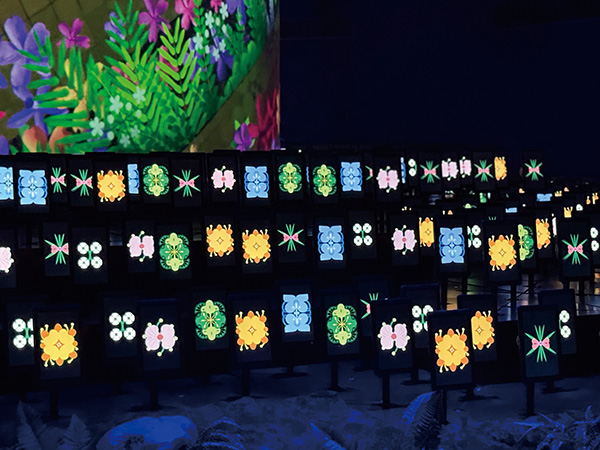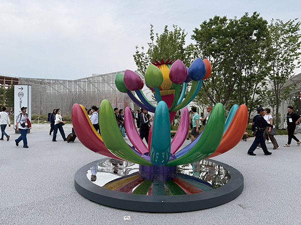 賴純純於大阪萬博健康照顧館戶外的作品〈天堂花開〉