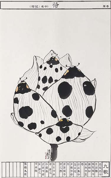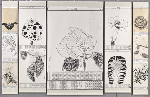 在袁金塔的藝術療癒觀中,草木從來不只是自然物質或藥理系統的材料,更是具有精神質地與人格意志的象徵載體。這次於香港中央圖書館「袁金塔的療癒藝術與身心靈藥方」展中,他特別選擇玉蘭與菖蒲兩味典型本草做為「詩性轉譯」(poetic translation)的主軸,並援引《離騷》關於草木人格化的書寫。