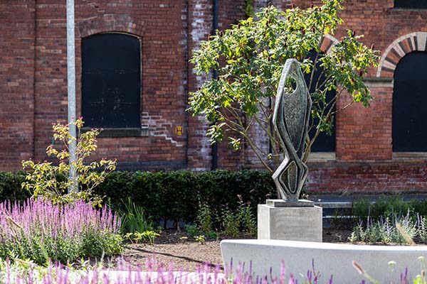 知名景觀設計師湯姆.史都華─史密斯設計的戶外雕塑公園安置黑普瓦絲1958年青銅雕塑〈上升形式(榮光)〉