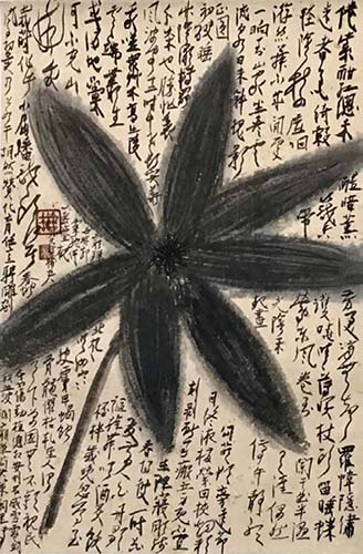 卜兹以草書為核心,將筆墨視為精神修行。他追求「劍道與書道合一」,筆勢疾如風雷,轉折凌厲卻不失節奏。2008年後,他發展出「八鋒旋書」,筆鋒多像旋舞,在奔放與收斂之間自成韻律,筆意的燥潤輕重在對比中盡情展現,由此將狂草書的「線條」與「空間」推向極致。