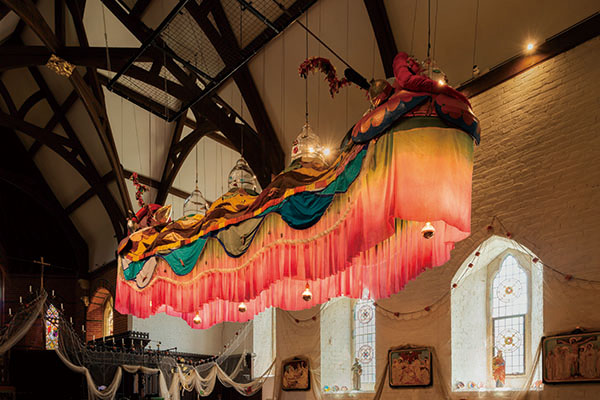 具華人家庭背景的宋瑞淵創作5公尺長的〈宋氏王朝○○○○〉懸掛於福克斯通聖彼得教堂中殿天花板