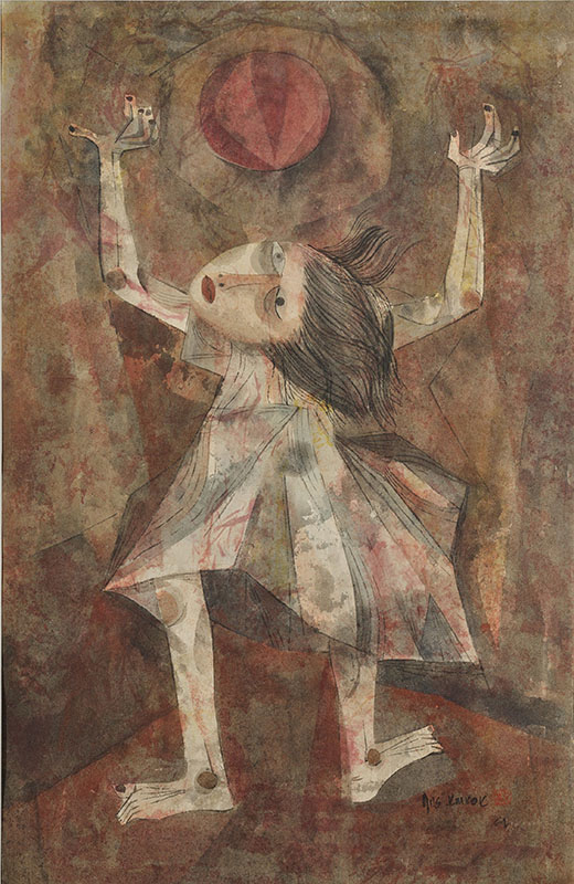 史博館展出修護後的席德進1956年作品〈賣鵝者〉。