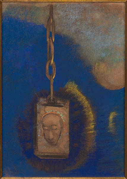 在法國,奧迪隆.魯東(Odilon Redon)是最早以象徵主義風格創作的藝術家之一。他的靈感多來自宗教與神話,即那些超越現代世界的精神意象。在粉彩畫〈悉多〉中,他描繪古印度史詩《羅摩衍那》裡的女神在被綁架途中灑下珠寶,引導愛人尋覓的神話,畫面被金綠光暈與星塵包圍,流露出夢境般的靜謐。