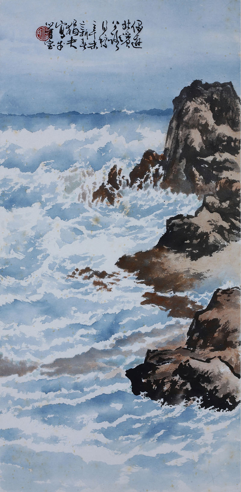 傅狷夫 大里濤聲 1991 水墨設色紙本 60×30cm 國立歷史博物館藏