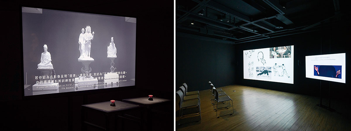 右/陳琛〈隱藏技術〉於鳳甲美術館「露餡的總是手─介面╱交握」展場一景(攝影:林玟伶;圖版提供:李佳霖)