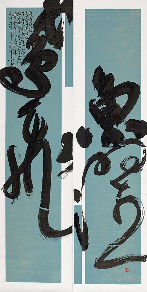 黃俊嘉 魚躍.鳶飛 2022 墨、色宣 180×48cm×2