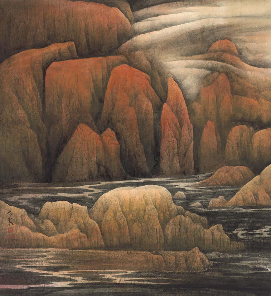 楊企霞 日耀山彤 2024 礦彩紙本 73×67cm