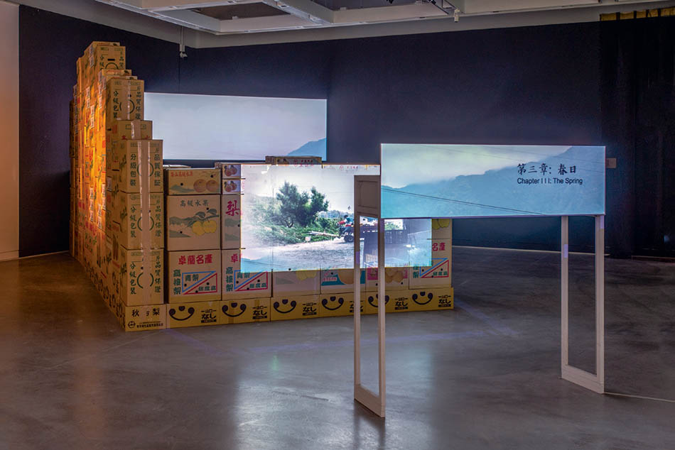 陳亮璇的〈橫山豐水〉以日本水梨在台嫁接的產銷歷程為核心,三組分割鏡頭隱喻天空、人與土地的關係,堆疊的水果紙箱象徵山陵起伏,三組影像在觀者移動到特定視角時合而為一,達到視覺和身體感的「空間嫁接」。張宸瑋的作品〈Volkswagen Transporter T5.gltf〉取材自俄烏戰爭,3D影像技術將毀損汽車的數位模型轉譯覆蓋於軟性布料,在沉重戰爭議題和輕盈媒材間重新省思個體與遠方災難的關係。楊傑懷的〈Working Holiday〉結合綠島人權文化園區的參與式行動,藉由戀愛實境秀的偽紀錄片形式檢視藝術家與「小幫手」的勞動交換關係,歷史空間的沉重感消解轉化為對日常生活的想像。