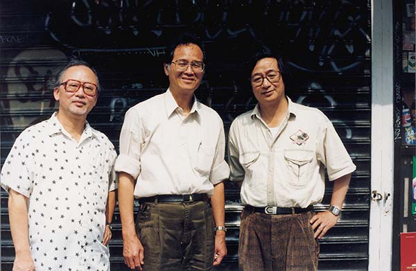 1993年紐約蘇荷巴黎三劍客(左起)陳錦芳、廖修平、謝里法,計畫於台北成立巴黎文教基金會,協助年輕學子到歐洲留學、進修。