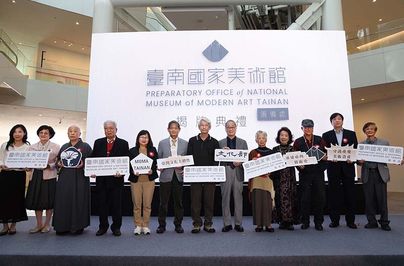 前輩藝術家家屬和與會貴賓於臺南國家美術館籌備處揭牌典禮合影(圖版提供:文化部)