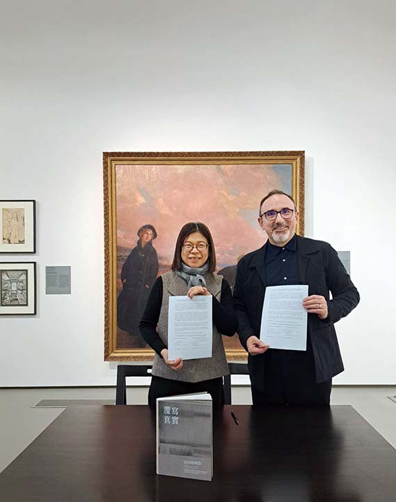 國立臺灣美術館館長陳貺怡(左)與立陶宛國家美術館總館長阿魯納斯.格魯納斯於維爾紐斯簽署合作備忘錄