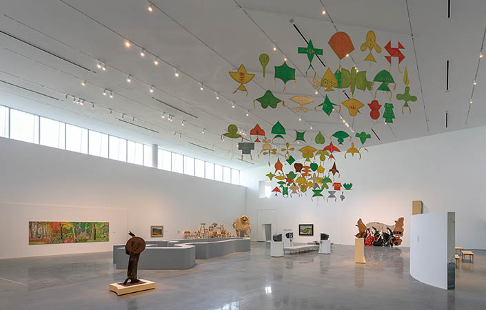 坐落於台中中央公園、結合圖書館與美術館的共構場域──臺中綠美圖,於2025年12月13日正式開館。館所建築外圍的格柵結構打破封閉邊界,空氣流動在觀眾與作品周圍,公園的自然氣息滲入室內,走出以往對美術館的想像,臺中市立美術館開館展「萬物的邀約」回應SANAA建築事務所的建築設計理念。