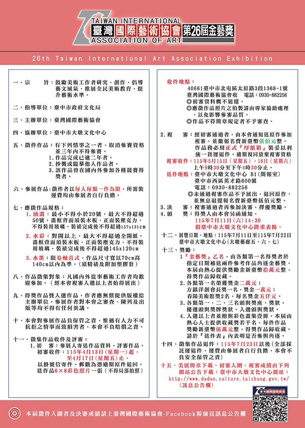 臺灣國際藝術協會第廿六屆金藝獎徵件