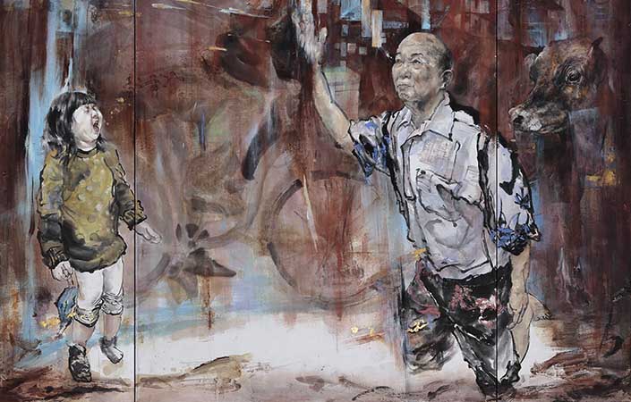 此次展出大作及小品均有,大型創作的氣勢磅礡,小品多了一種清新可愛之感,把平日遊歷山水間景色,以鋪天蓋地的闃黑填滿畫面,展現雄強壯闊的場景,背景的黑具有內斂的力量,凝重而難以看透的特性。