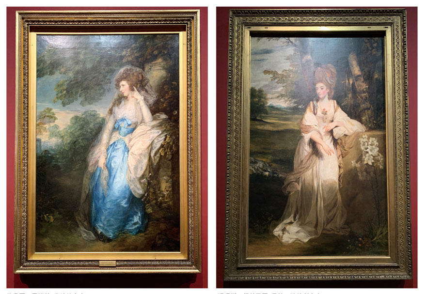 看重兩位大師異同之處的「英國繪畫的黃金時代」展,以雷諾茲饒富古典繪畫底蘊的〈龐培德夫人〉及根茲巴羅飽含感性與浪漫情懷的〈貝特-達德利夫人〉兩件呈現鮮明對照的大尺幅全身肖像為展覽揭開序幕,歡迎觀者對比兩位英國藝術先鋒作品裡相似卻不同的藝術詮釋。除此之外,這兩件肖像也體現出雷諾茲與根茲巴羅致力將英國肖像畫的視覺張力和價值地位提升至嶄新高度的野心,以及他們邊向古典大師致敬邊開發嶄新畫風所開創而出的藝術道路。因此,〈龐培德夫人〉與〈貝特-達德利夫人〉的並列展出,不僅完美象徵了英國藝術的黃金時代,更體現出激發新一代藝術家懷抱登峰造極使命感的最佳典範。