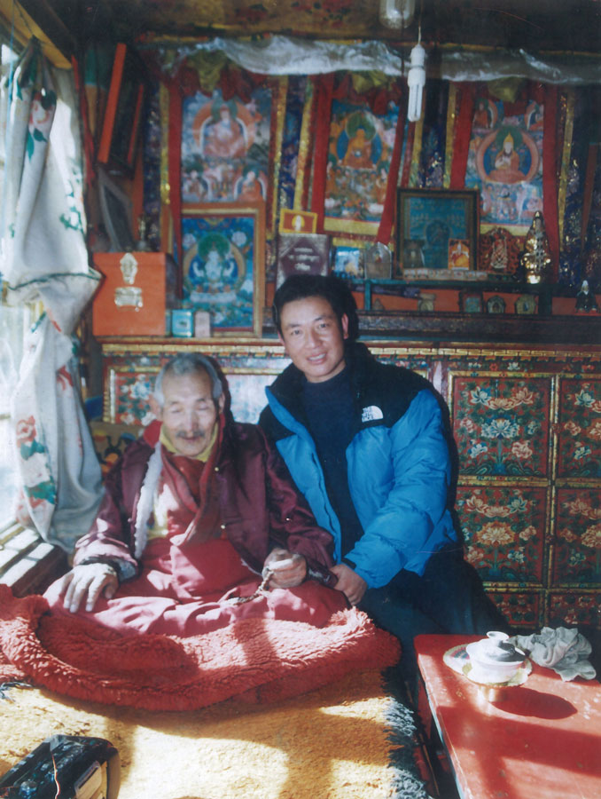 1998年,夏魯旺堆在夏魯寺與恩師格桑合影。
