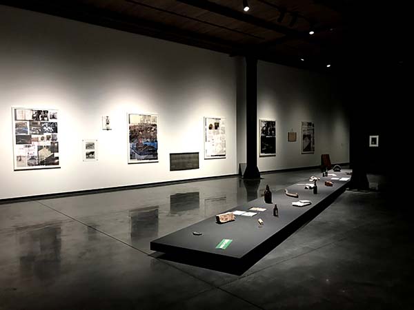 「Thank You Memory─從釀造到創造」第1區資料室展場一景。黑色伸展台展出吉野町磚倉庫的相關文史資料。