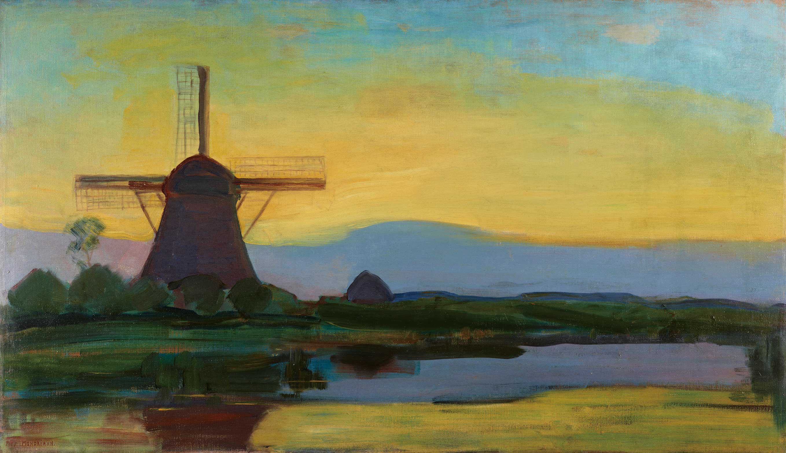 Piet Mondrian, Oostzijdse Mill in the Evening, Oil on canvas, 76.5x117.5cm, circa 1907-1908. Gemeentemuseum Den Haag