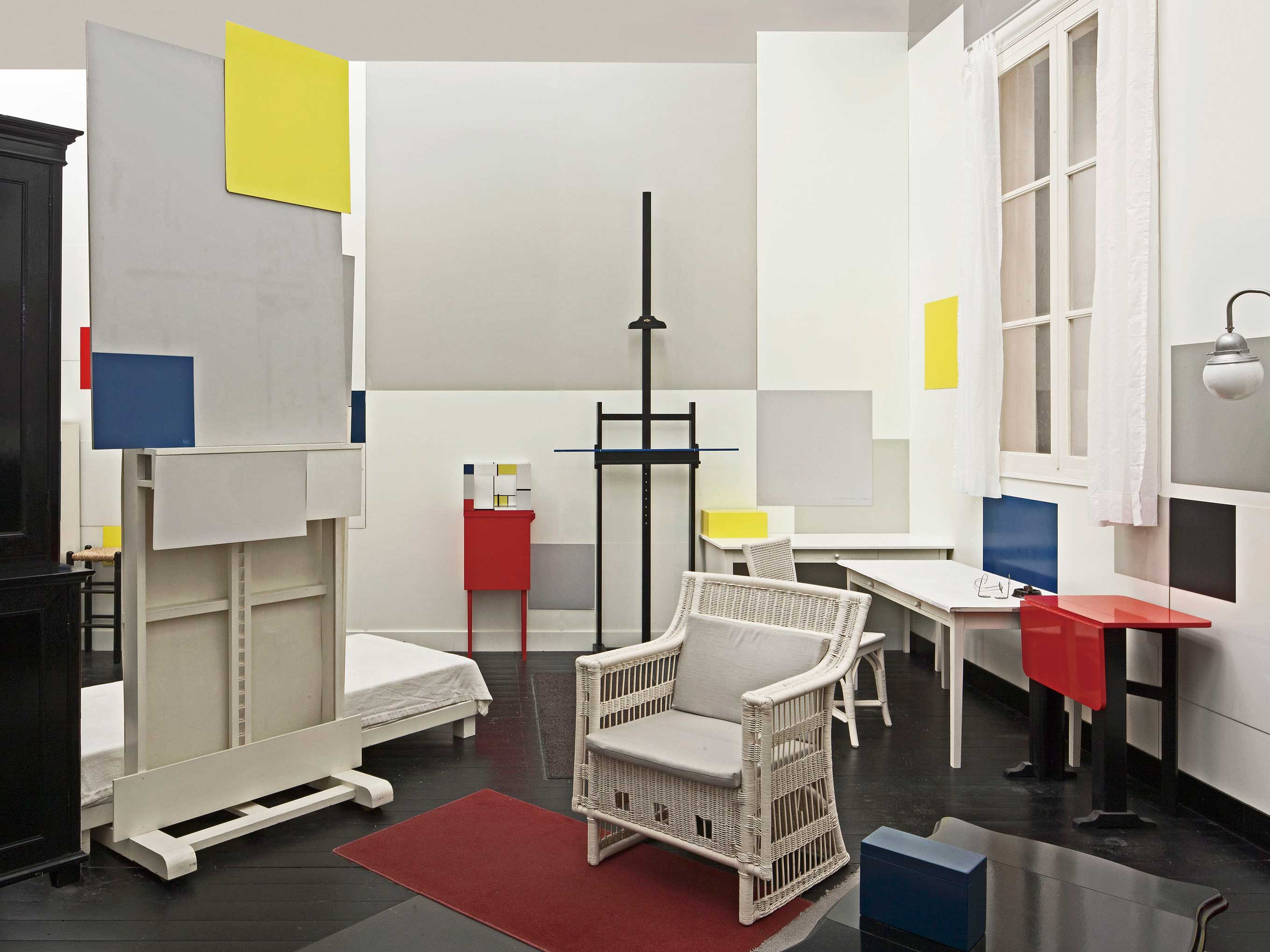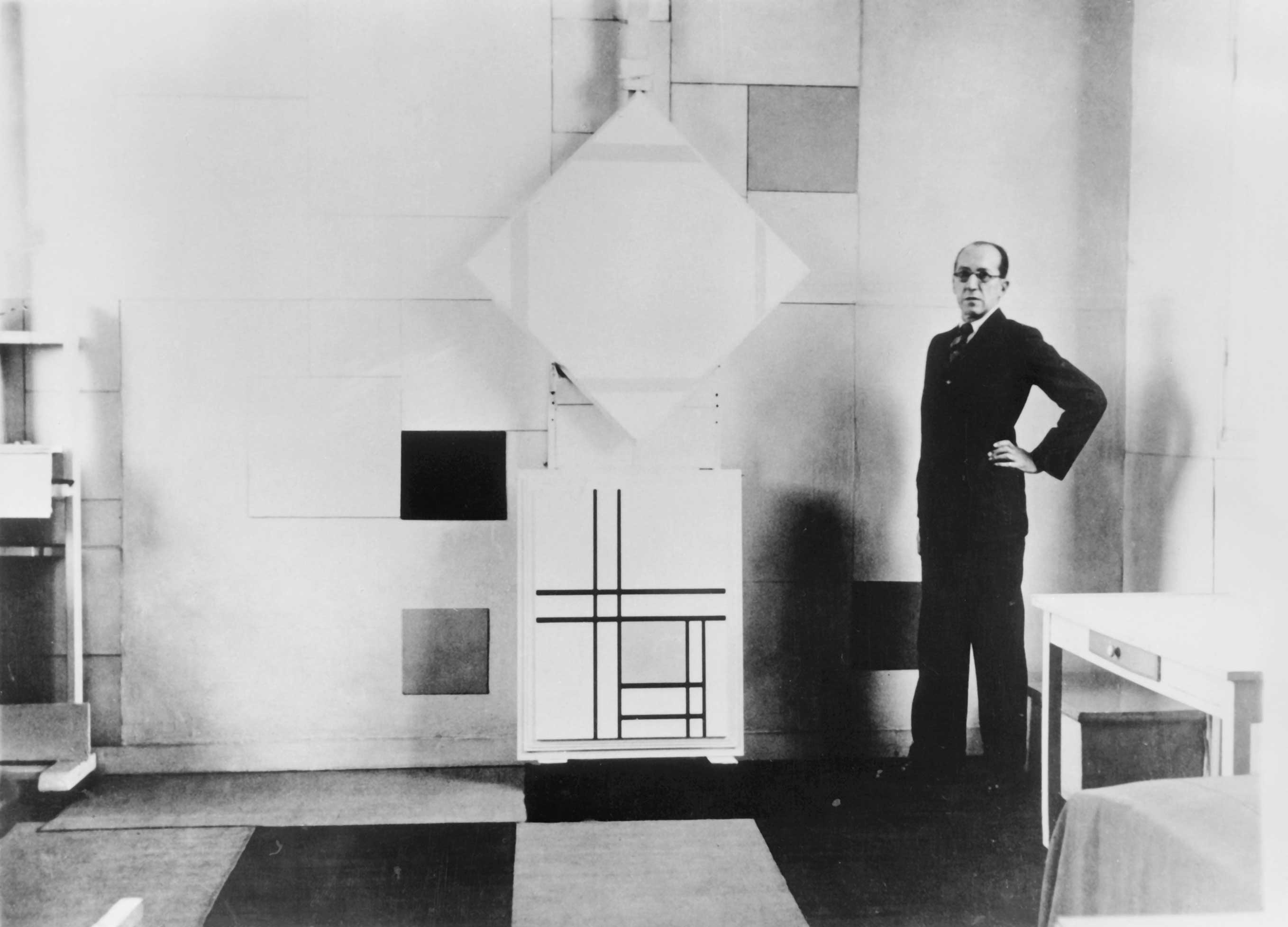 今年荷蘭政府以「從蒙德利安到荷蘭設計:百年風格派」為題,在各地舉行多項慶祝活動,妝點海牙市政廳是其中之一。海牙市立美術館也展開「發現蒙德利安」特展,展出完整館藏,提供觀眾一覽蒙德利安多變創作歷程的機會;此外,館方同時展出畫家的書信、相片、私人物品與收藏。為了讓觀眾感受當年的創作氛圍,美術館甚至重建蒙德利安在阿姆斯特丹、巴黎與紐約的工作室。在這頗具紀念性的時間點,回顧蒙德利安與風格派的關係,本文將以城市作為分節,介紹蒙德利安的創作歷程,及其創作如何影響後世的藝術發展。
