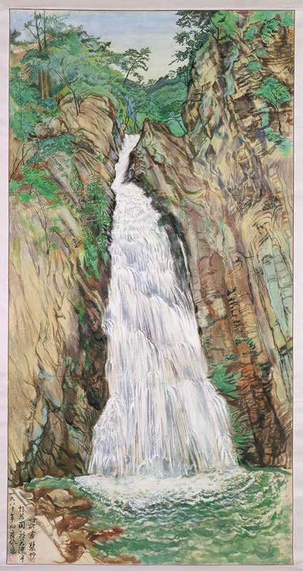 陳慧坤 谷關龍谷瀑布 紙本膠彩 187x96cm 1980