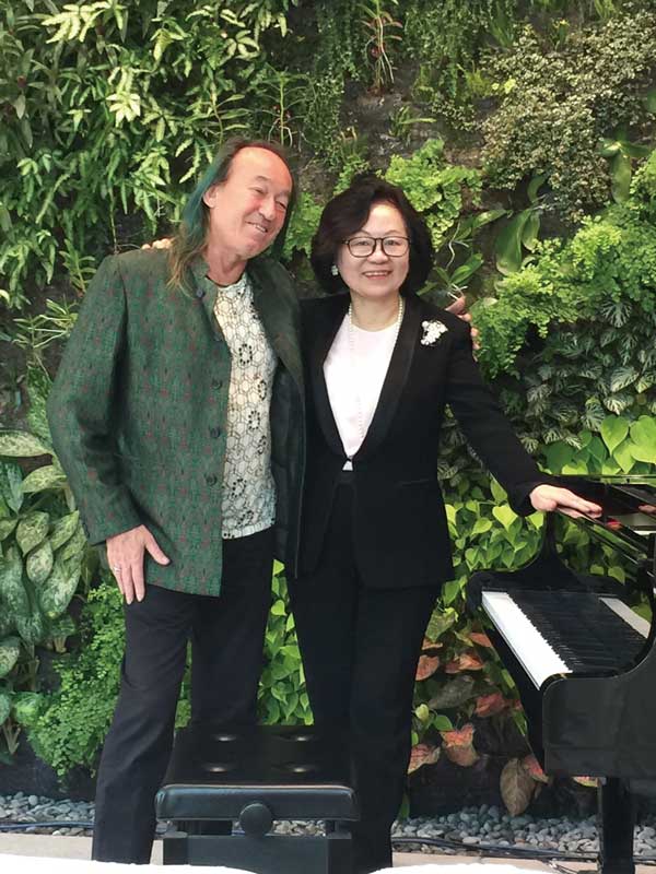 筆者與綠先生合影於兩廳院綠牆前