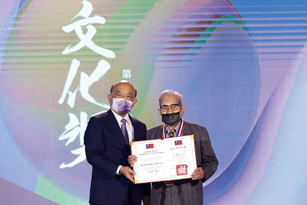 行政院長蘇貞昌親授文化獎章予本屆文化獎得主王清霜(右)
