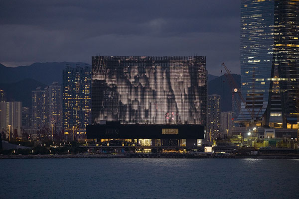 鮑藹倫 光之凝 2022 限地製作錄像 13’20” 於香港M+幕牆展出一景
