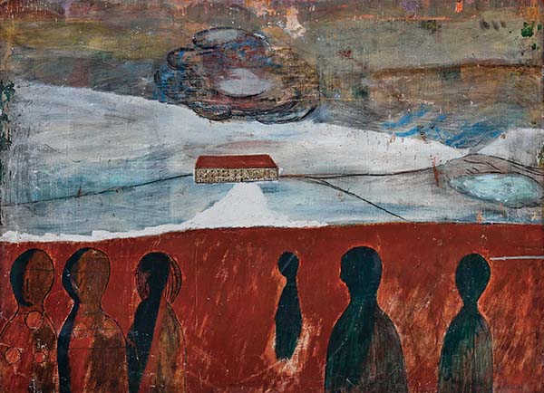 「露易絲.布爾喬亞:繪畫」以紅色基調的早期畫作〈情誼〉揭開序幕。〈情誼〉是布爾喬亞以鄉間房屋與道路為主題的早期作品之一,也是一幅家庭肖像。布爾喬亞曾指認自己為畫中左方數來第三個人影,其父母、姊姊、弟弟及弟媳相伴左右。然而,這幅家庭肖像的鮮紅用色不但並未替畫面增添溫暖的訊息,甚至反而增添了詭譎的氛圍。畫中人不但沒有臉孔,在荒涼的景色中還顯得疏離陌生,布爾喬亞形容:「這些人物身處混沌狀態……他們在陰影中一起遊蕩。」烏雲籠罩著鄉間小屋,彷彿暗示現實生活中布爾喬亞家庭內部暗潮洶湧的緊張氣氛。事實上,布爾喬亞許多早期畫作都影射她在法國的兒時回憶,也因此被她稱為「懷舊之畫」(nostalgia pictures)。