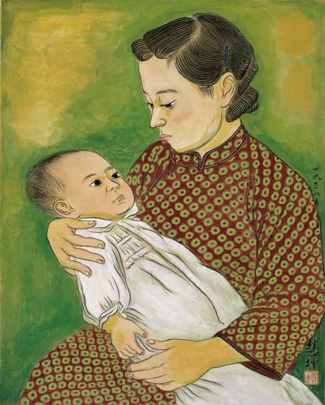 陳慧坤 母愛(二) 膠彩紙本 48x38cm 1949