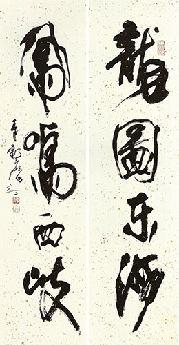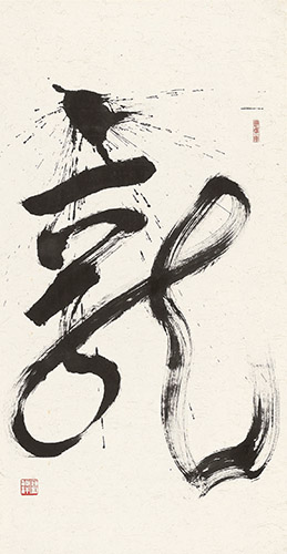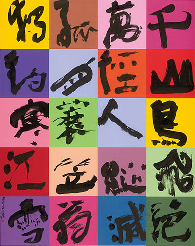 傅申1936年生於上海,是當代著名中國書畫史學者、鑑定家、書畫家。傅申認為書藝要有所發展,一定要兼顧傳統與創新,要創新就必須具備傳統的深厚基礎,作品才能歷久彌新。傅申的楷書娟秀,隸書古樸,篆書莊嚴,行書則融合各家各代元素,隨時代演進而創新。傅申善用漢字的圖象性特質,近年更專注於實驗性作品,透過文字符號的重新解構來造意,並融入「繪畫性」來突顯詞彙的情境,結合社會時事,反映其生活態度及社會批判。
