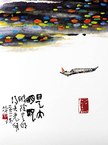 李轂摩原名國謨,出身農家,其書藝擺脫流派、理論的束縛,而能遵古求新、自成一家,被讚譽為「台灣本土水墨大師」。李轂摩的創作理念結合時代脈絡,融鑄東西方繪畫,加上他修習禪佛,因此作品常蘊含禪學等生活哲理,再搭配饒富趣味的詞句,表達融入禪宗哲學的創作高度與詼諧感。如〈好雞婆〉便是將雞擬人化,意喻「人人當個好雞婆,守望相助不用愁」,又如畫中的蝸牛流著涎液緩慢在大石頭前進的景象,象徵「謹言慎行」,也多了幾分哲理及禪意。