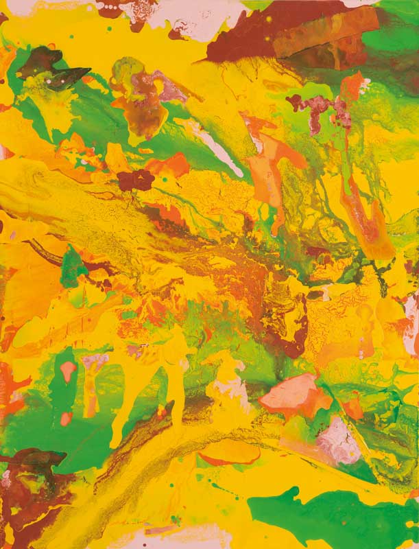 當然,彩色創作也曾歷經轉變。現在這個階段我可以真的很自在,在「潑」、「灑」、「滴」、「流」中,既像暖身、又像播種,一路灌溉,讓作品慢慢成形。如此的過程是用實驗性的方式找出畫面最佳的可能性,並將好的留下,周而復始將累積下的經驗成為下一次創作的素材。我無意將所有東西都掌握在自己手上,而希望畫布上有一些意外留下,這也是我的作品層次豐富的原因。