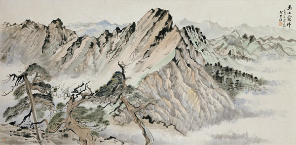 〈對高嶽(次高山)〉膠彩 100F 1972
