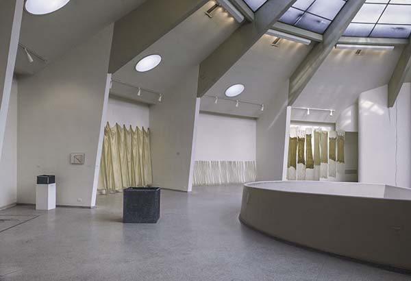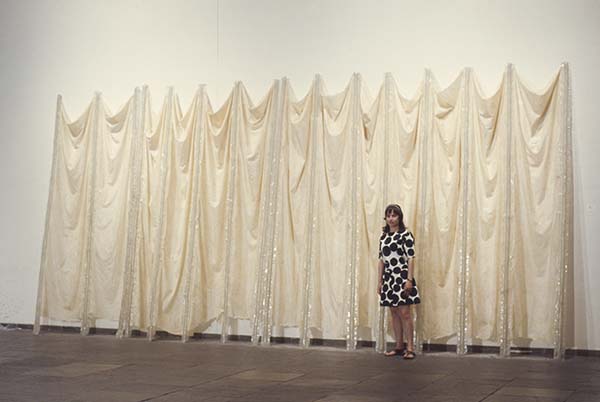1972年紐約古根漢美術館「伊娃.黑塞:紀念回顧展」展場一景,左側展示了伊娃.黑塞的〈延伸擴展〉。