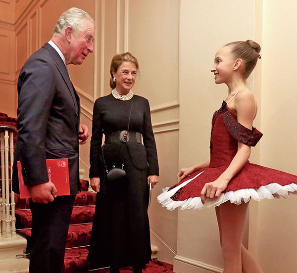2019年,當時為威爾斯親王的查爾斯三世與皇家芭蕾舞學校(Royal Ballet School)的舞者合影。