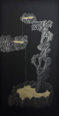 2021年甫獲得文化部MIT新人推薦特區的藝術家黃立穎,在2023年又斬獲NEXT ART TAINAN 臺南新藝獎的殊榮,並與台南在地的藝術空間─水色藝術工坊合作,同時也將在台南藝博現場展出。黃立穎以「石墨」媒材作畫,藉由媒材的特殊性,反轉了原本素描對於影子描寫,在黑底上將需要光的地方一筆一筆的畫出來,石墨雖然屬於深色,卻能夠反射光線,因此觀者在展場移動時,作品的光源也會隨之變化,看起來就像是觀者在追逐光的過程。