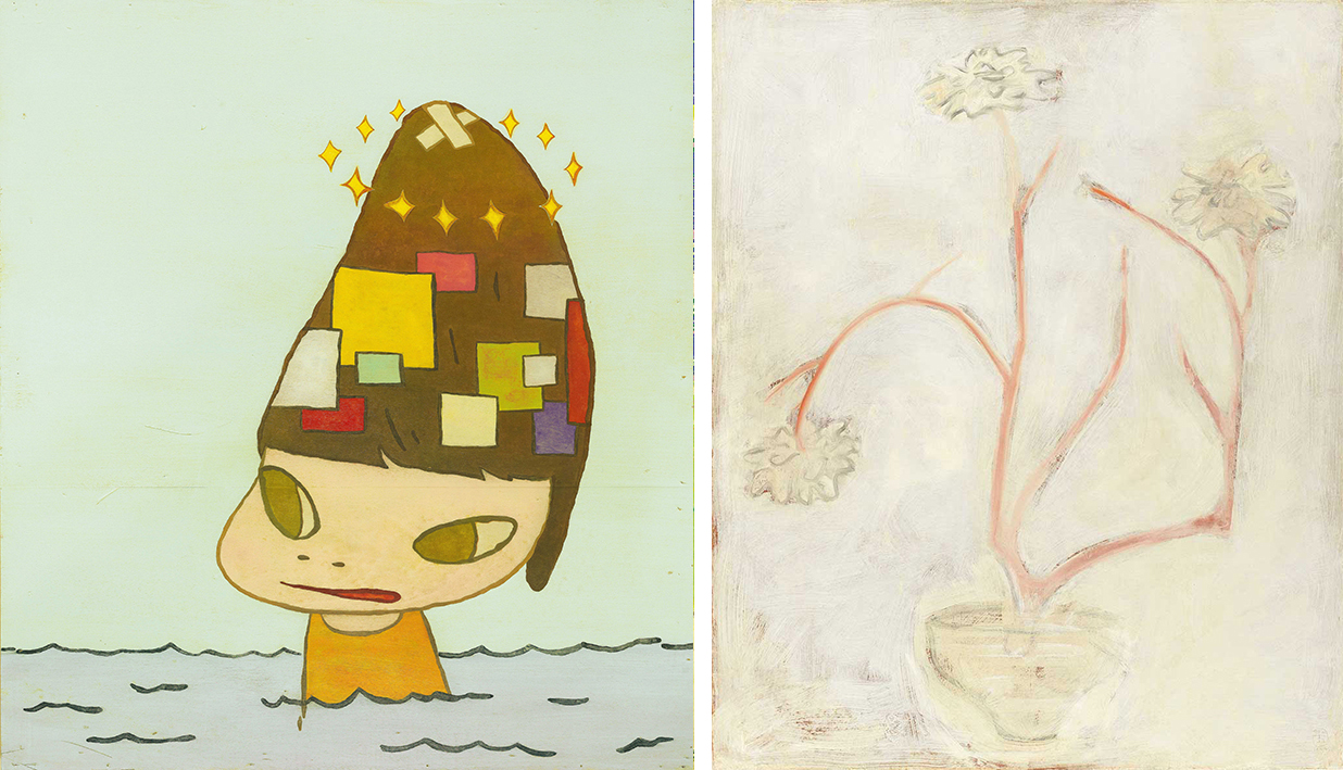 左:奈良美智 修補頭 2011 壓克力木板 144.7×130.5cm/右:常玉 盆中牡丹 1950年代 油彩纖維板 92×75cm