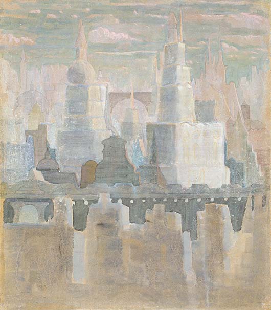 丘爾廖尼斯 城市 1908 蛋彩、水粉紙本 36.2×31.5cm 考納斯丘爾廖尼斯國家美術館藏