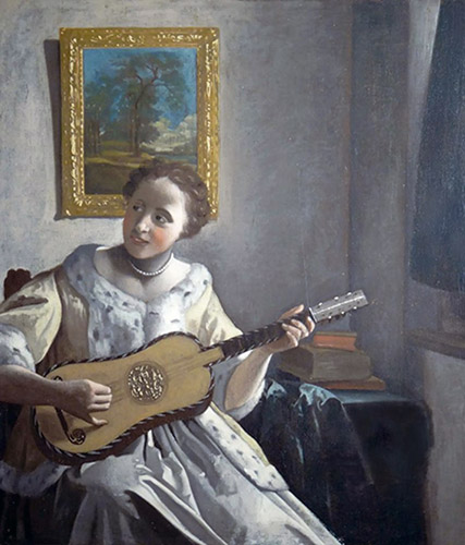 維梅爾(Johannes Vermeer)據信僅有37件已知作品傳世,但近期,有專家認為一件費城藝術博物館(Philadelphia Museum of Art)的館藏,應出自維梅爾之手。這件〈彈吉他的女子〉(Lady With a Guitar)自1933年來一直由費城藝術博物館收藏,但從未公開展出,它與倫敦肯伍德宅邸(Kenwood House)典藏的維梅爾作品〈吉他手〉(The Guitar Player)十分相似,過去專家將〈彈吉他的女子〉推論為17世紀晚期的維梅爾複製畫。