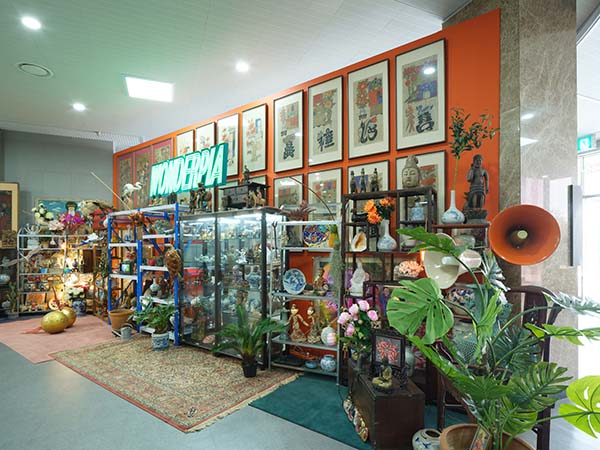 金基羅 偏執狂般的安全花園 2023 陶瓷、顯示器、喇叭、LED燈泡、音響、閉路電視、植物 尺寸依場地而定 於國立光州博物館展場一景