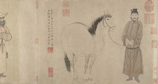 趙孟頫、趙雍、趙麟 吳興趙氏三世人馬圖(局部) 1296 / 1359 水墨設色紙本 30.2×178.1cm